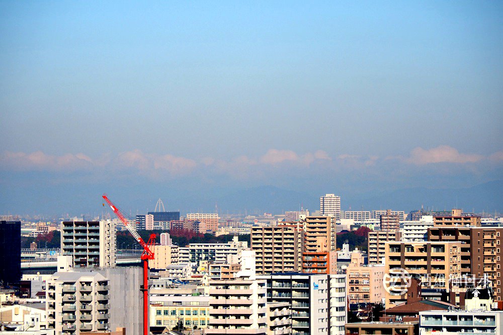 天守閣上視野遼闊,城市的背景是綿延的山系