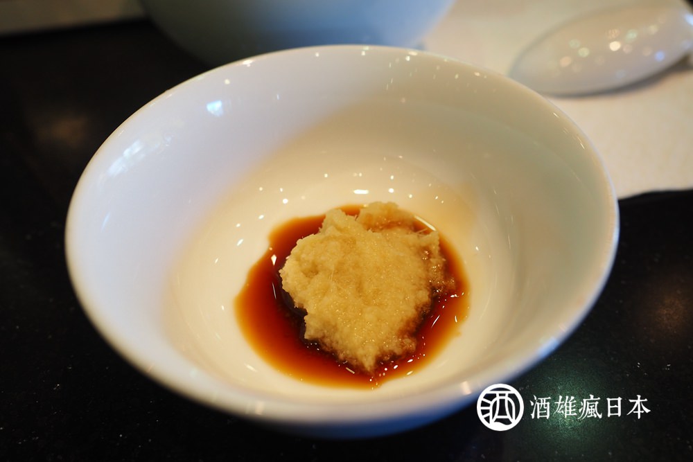 而牛尾是一個帶有很多膠質的部位,給了很大一塊,這個牛尾是要沾薑末醬油來吃的,因為牛尾本身只有用原味,所以醬油提供的甜味,以及薑提供的刺激性辣味,就變成了很棒的平衡,比我想像的還好吃啊!