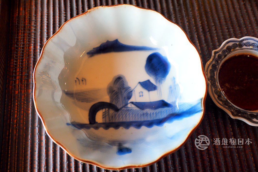 盛裝生魚片的器皿是骨董,每個人可能拿到的圖案不一樣。