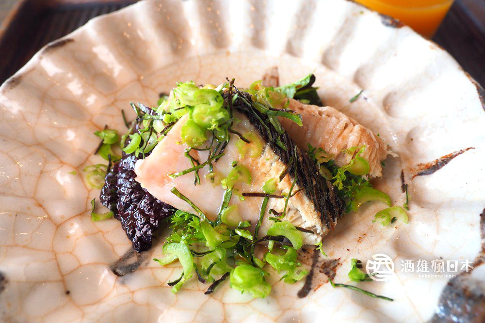 馬交魚在白身魚中,特別肉身厚實,吃起來口感很有滿足感,當季的魚身上會附有豐富油脂,吃一口下去,先是感受到油脂鮮味,再來是烤過的香氣,最後是白身魚肉本身的鮮味。富有層次感的一道菜,讓大家又是讚嘆連連。