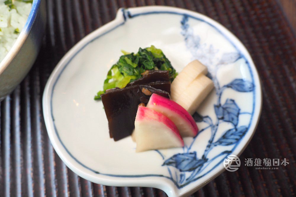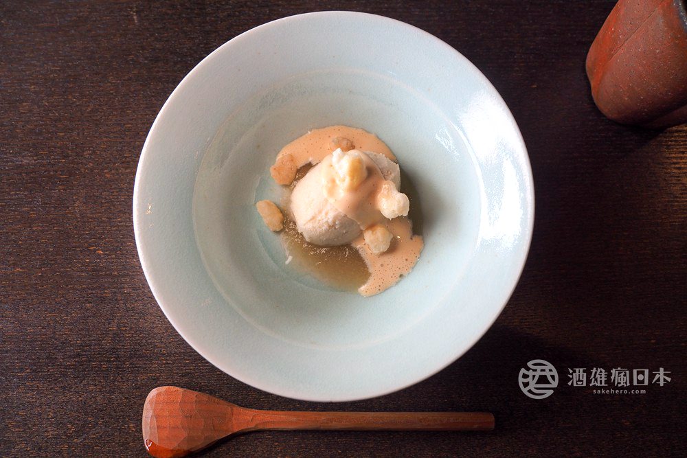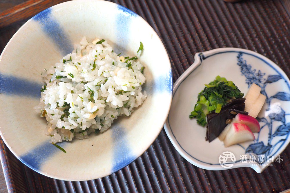 第七道是山菜炊飯與漬物。終於要來到尾聲,但我真的已經吃不下,只能扒兩口試個味道而已。吃起來比想像中的還要清淡,沒有一絲的厚重。搭配的漬物也是走比較清爽路線的。說真的要不是我飽到喉頭,我真的會想拼命把整碗飯都吃下去啊!
