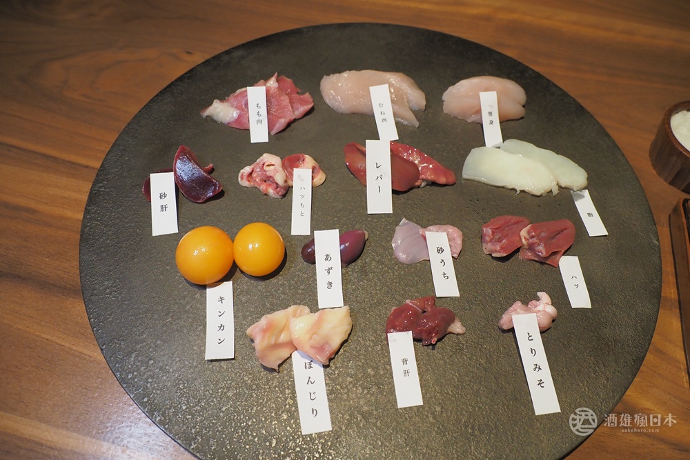 「my farm to table おにや」提供各種雞肉甚至內臟的刺身,種類跟技法,真的是我前所未見。超越常識的美味,只要你願意嘗試,就能打開一個全新世界。上圖由左至右,由上到下,分別為腿、胸、柳、胗、心管、肝、油脂、蛋胚、脾、銀皮、心、臀、腎、尾脂腺。整盤都是生食,不知道你有吃過幾種生的呢?