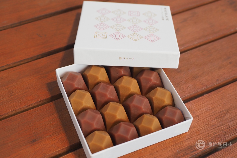 將琥珀糖加上所謂的第四類巧克力「Ruby巧克力」以及「Blonde巧克力」,而製成的新感覺和菓子,取名為「WACOLATE(和巧克力)」。紅色的有加入覆盆子跟一點點萊姆,呈現微微的果酸;金色的則加入烘烤過的杏仁及法國蓋朗德鹽之花。