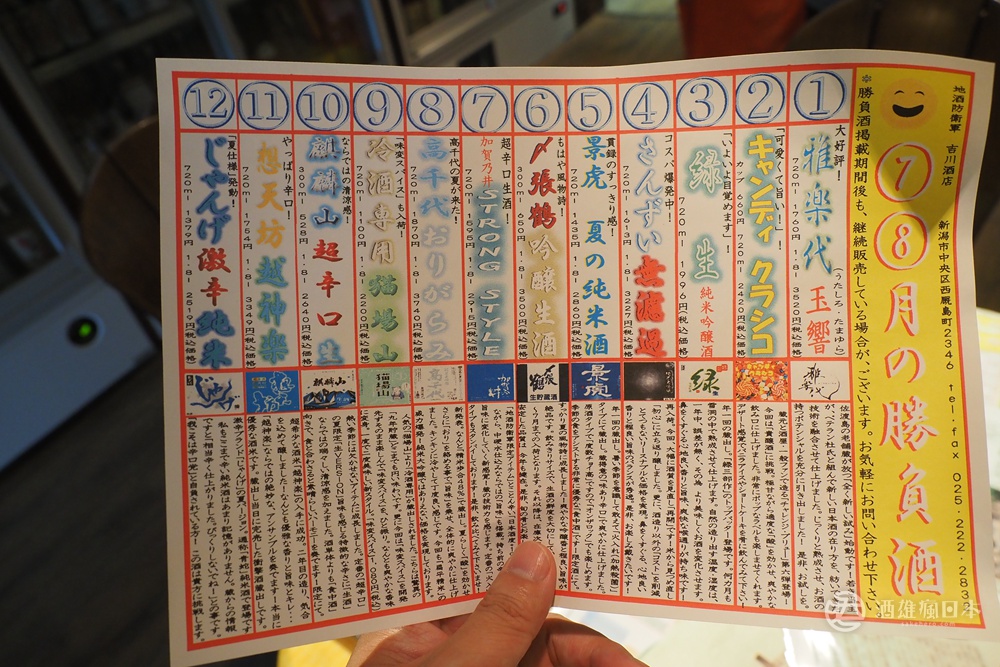 老闆吉川目前已經是第五代,本來還是以啤酒、燒酎為主的品項,從他這一代開始將產品線做了調整,目前店內95%都是新潟地酒,除了支持在地酒廠之外,也是想幫助日本酒初學者,能邂逅到自己喜歡的酒款。