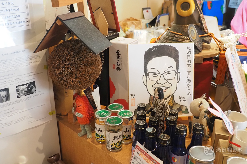 吉川酒店是一間已經創業150年的老舖酒販店,商品以新潟地酒為主,老闆因為很喜歡鹹蛋超人7,致敬劇中的地球防衛軍,自詡為「地酒防衛軍」,想以實際行動支持新潟的酒造,故取了這個名字。