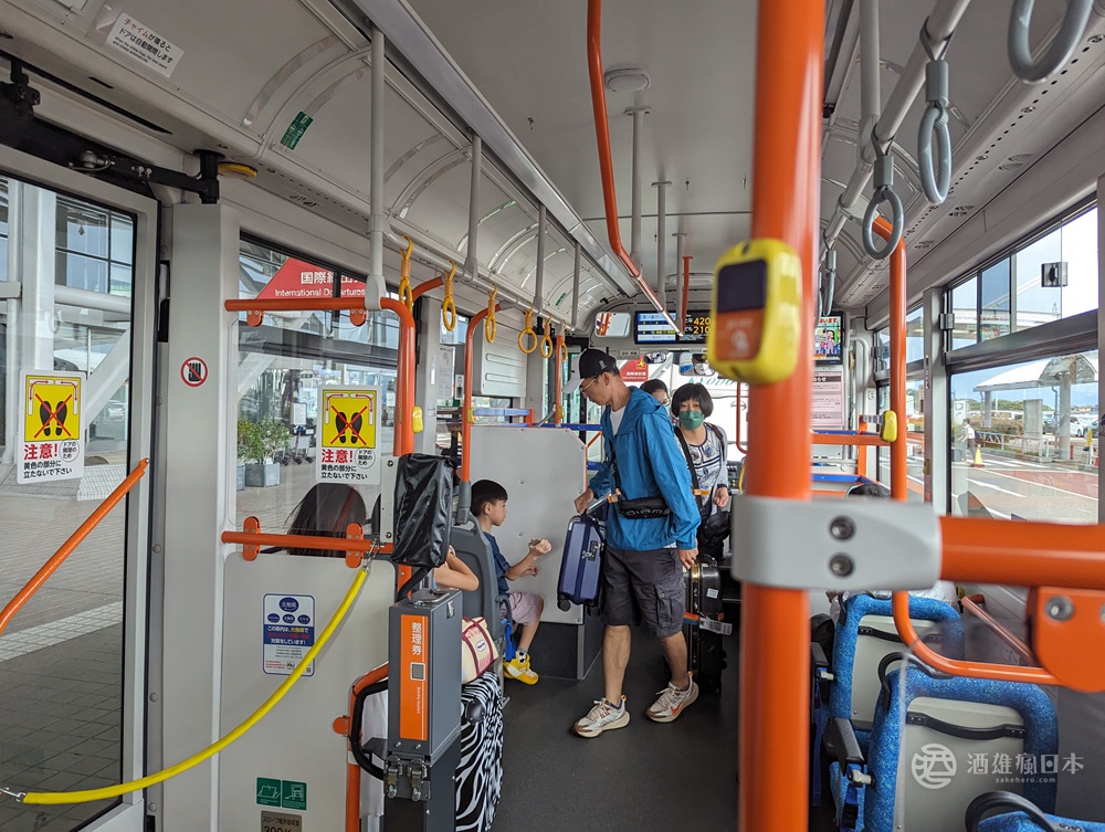 機場巴士為低底盤電動車,有設置行李架,搭乘的人不算帶多,還算便利。