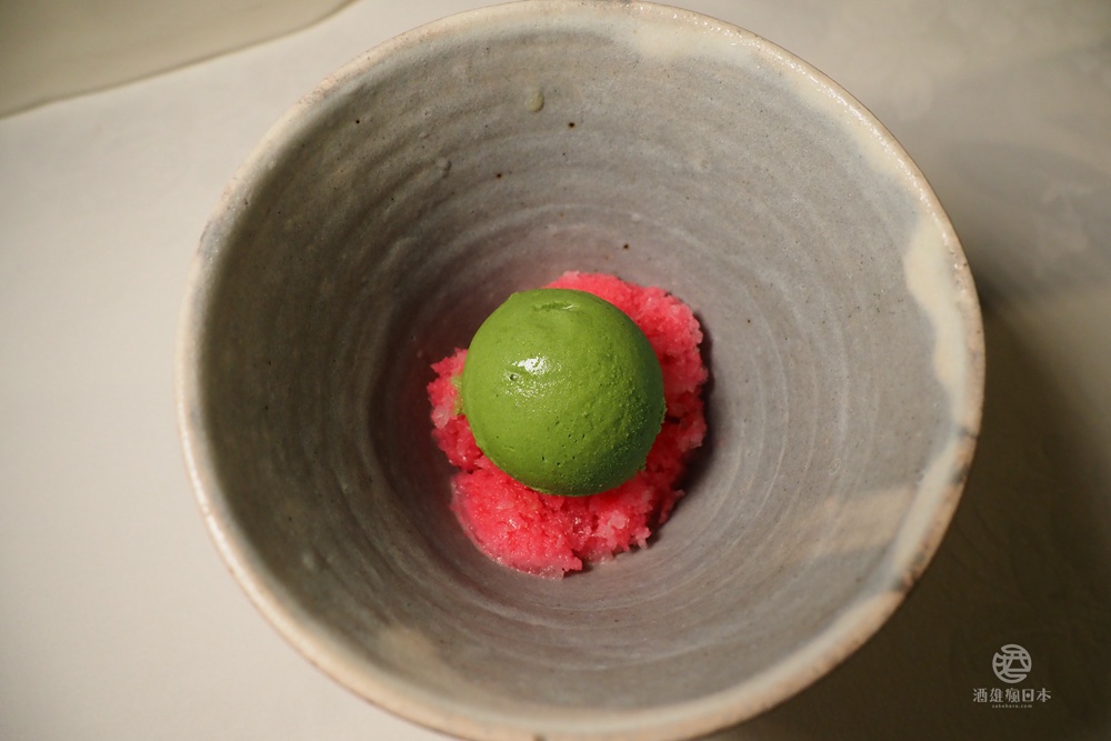 酒粕風味的彩虹剉冰搭配季節水果冰淇淋
