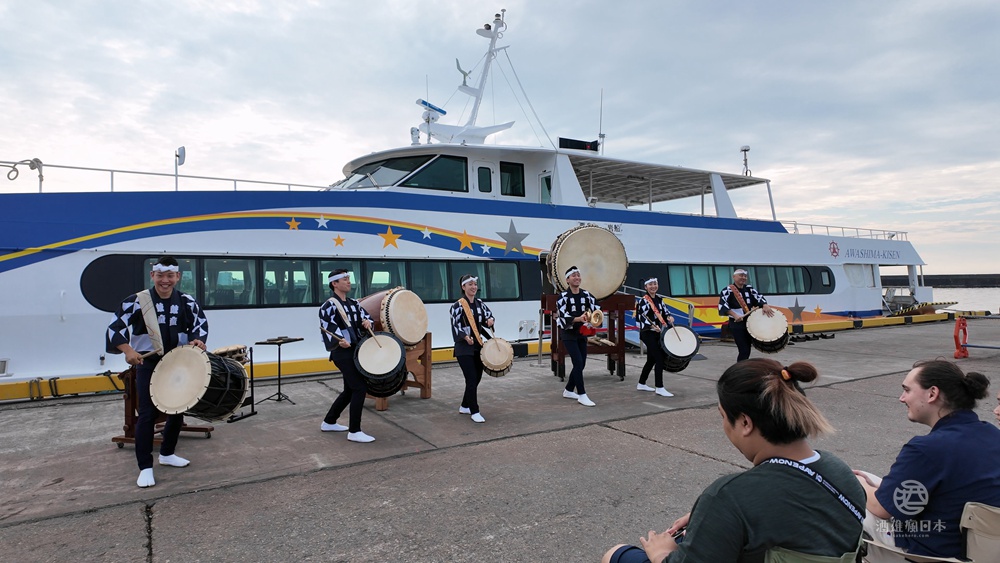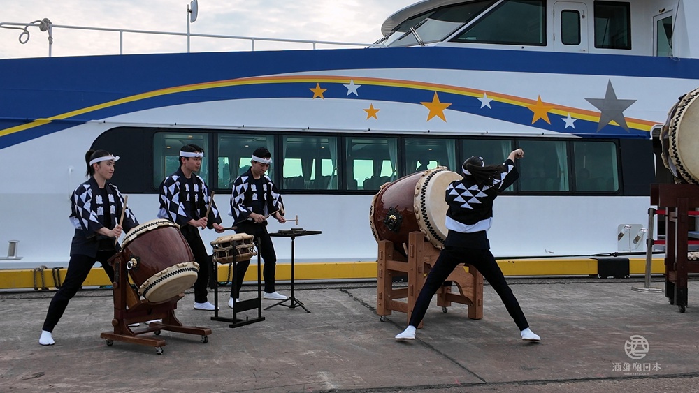 接下來我們為了要出船欣賞柏崎花火大會,移動到了碼頭邊,沒想到竟然還有驚喜,只給我們的專屬鼓童秀。
