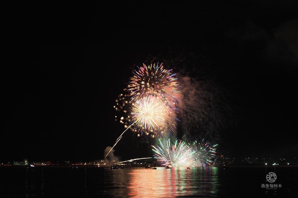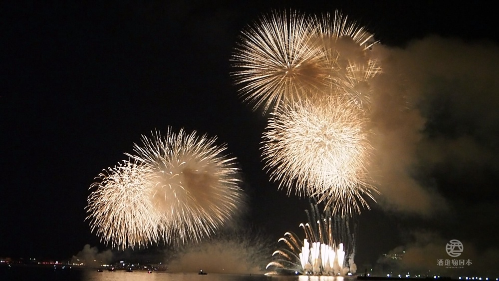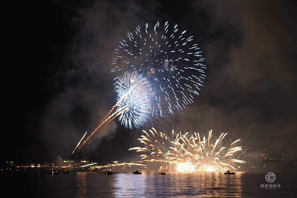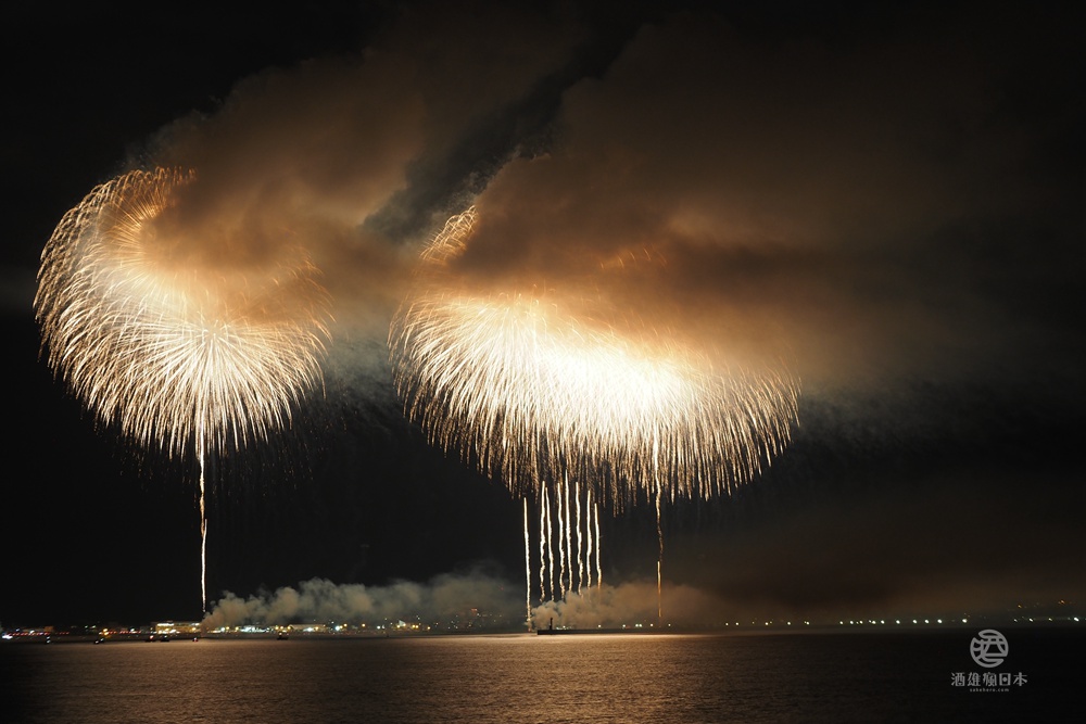 柏崎花火大會的最大特色之一就是從海上施放,花火在日本海上空綻放,與海天一色的背景相映成趣,形成一幅美麗的畫面。此外,還有600公尺寬的花火瀑布。花火在600米寬的範圍內同時綻放,形成壯麗的花火瀑布,讓人嘆為觀止。最後的壓軸表演是尺玉300連發,場面宏大壯觀,讓人印象深刻!