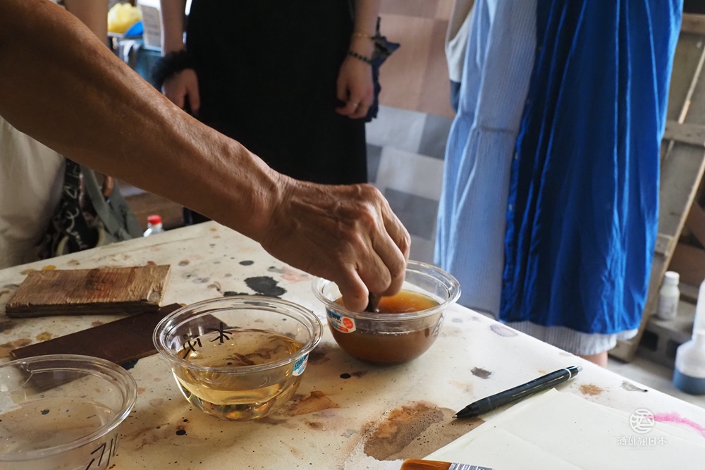 和紙只要沾上不同的染劑,就會馬上變色,不需要經過很長的上色時間,上色後只要風乾就可以用了。