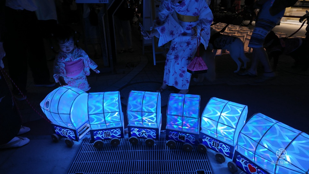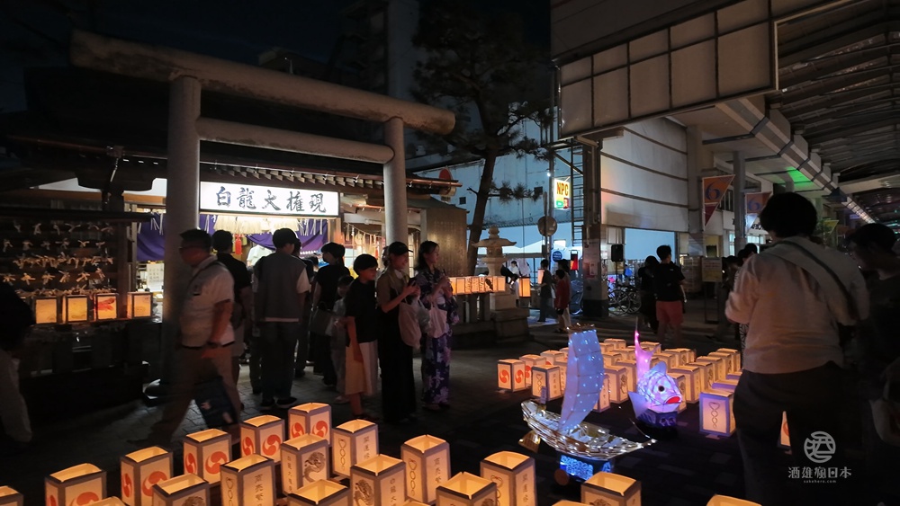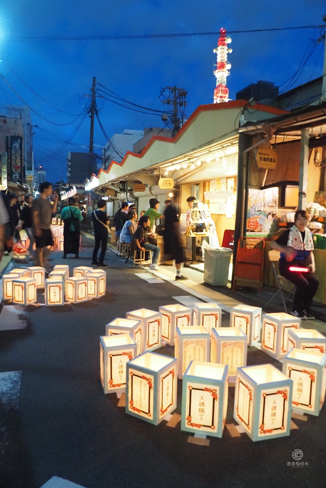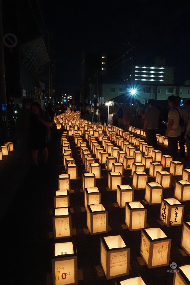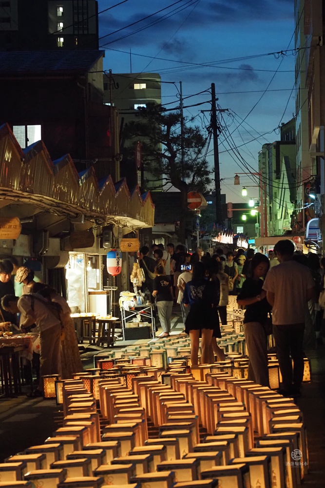 太陽下山,燈籠點亮後,整個街區被柔和的燈光照亮,營造出一種夢幻般的氛圍。除了燈籠展示,祭典還包括露店、燈籠製作體驗,等各種活動。參加者可以穿著浴衣,漫步在燈籠點綴的街道上,也可以跟三五好友,就在路邊架設的座位區喝小酒,享受夏夜的美好時光。