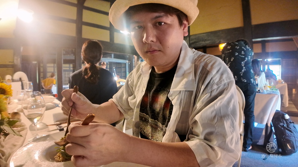讓大家看看吃飯的場景,我算是坐主桌,我對面正好就是新潟知名旅宿里山十帖的老闆岩佐先生,席間也做了一下國民外交,跟他聊很多台灣水果跟我住的台中,可以跟他交流真的感覺非常榮幸啊!