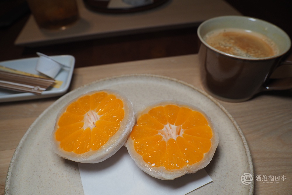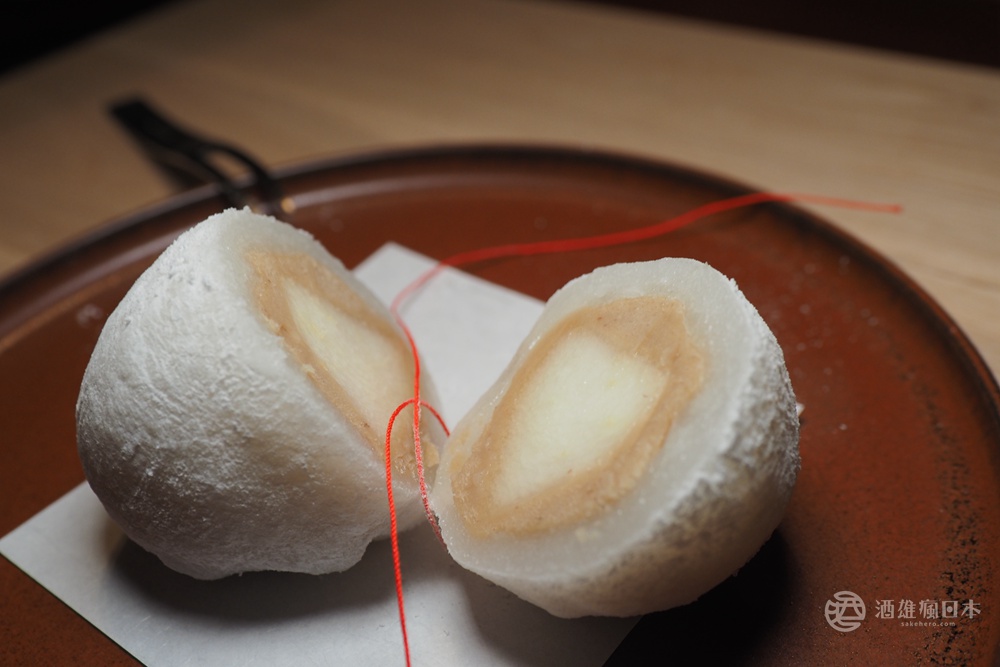 外面下大雨,剛好找到一家水果大福的和菓子店(古町這邊真的有很多和菓子店),算比較新潮的,除了水果可以選之外,也可以選內餡(番薯餡或栗子餡),會給一條紅繩子讓你自己切斷面,當然如果怕失敗,也可以請店家幫你切哦。