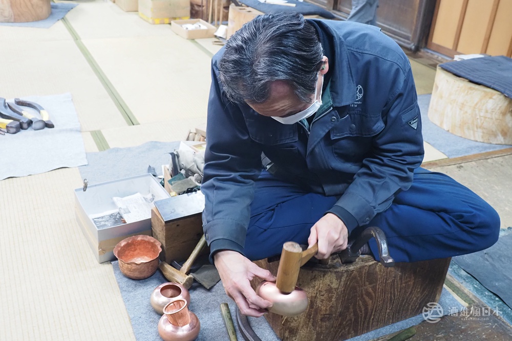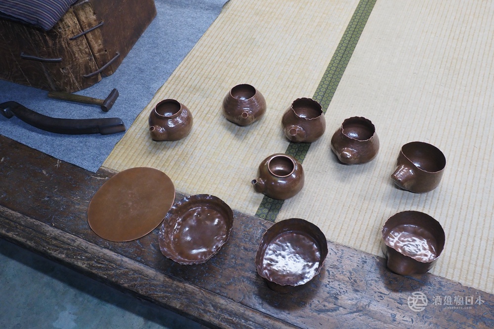 所謂的「鎚起銅器」,是用從一片銅片,經過反覆敲打,慢慢敲成一個壺的形狀,光用想的就覺得很困難,其必須下的苦心,真的可說是日本職人精神的極致展現。
