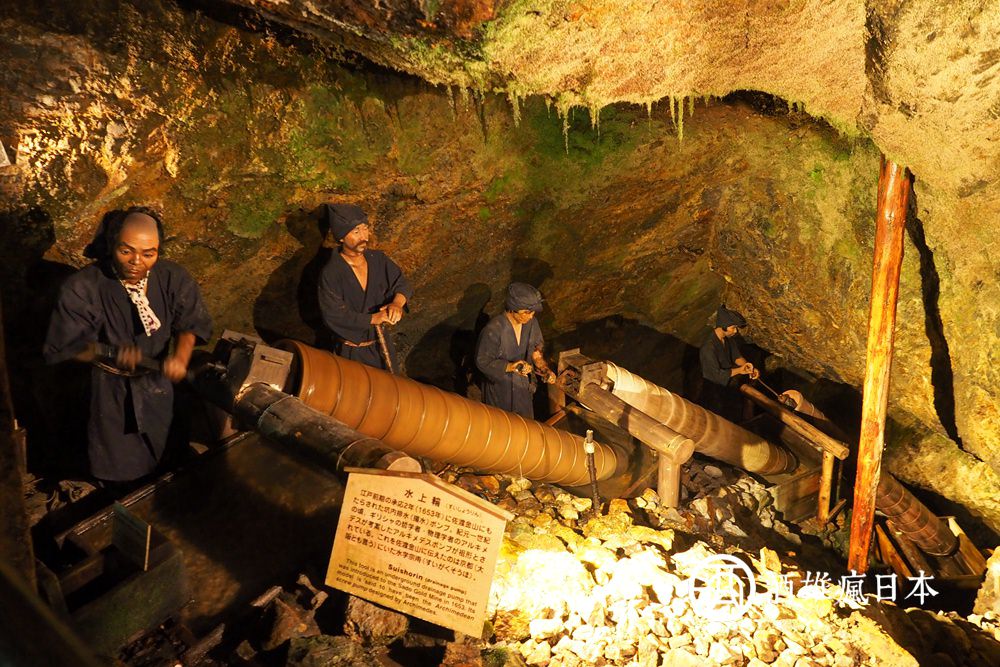 接下來就來金山探險囉!錯綜複雜的金山,其實有了上百個入口,在江戶時代,一年可產出400公斤的黃金,以及40噸以上的銀,是當時世界產量最豐富的金礦之一。開採前後約橫跨了400年左右,坑道總延長來到了400km那麼長,其中有作觀光開放的僅有300m而已。想到那些考古學家,要走完所有坑道,究竟是花費了多少光陰呢!
