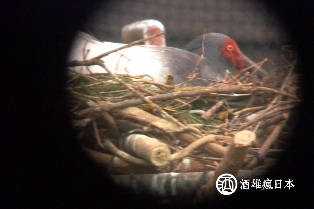 正好在孵蛋的朱鷺,可以用望遠鏡觀察巢裡的現象。他們可是倡導夫妻平權,雙方會輪班孵蛋的呢!
