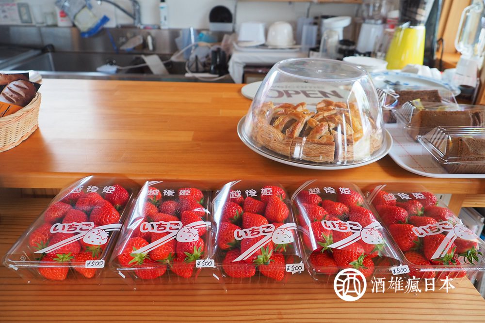 接著我們來吃一下在地產的草莓,草莓栽種在佐渡島也是一種農業收入,只不過面積不是很大,品種也限於「越後姬」一種而已。[さいとう]這邊可以吃到各種草莓製作的飲料、剉冰,冬~春季限定,如果有來務必試試!