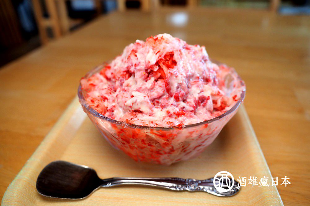 鏘鏘!草莓剉冰來了,是把草莓冰冷凍之後再刨成的,所以是百分百的草莓,然後淋上店家自製的煉乳,真的好有天然草莓味,不是那種香精的味道,一吃就會上癮啦!