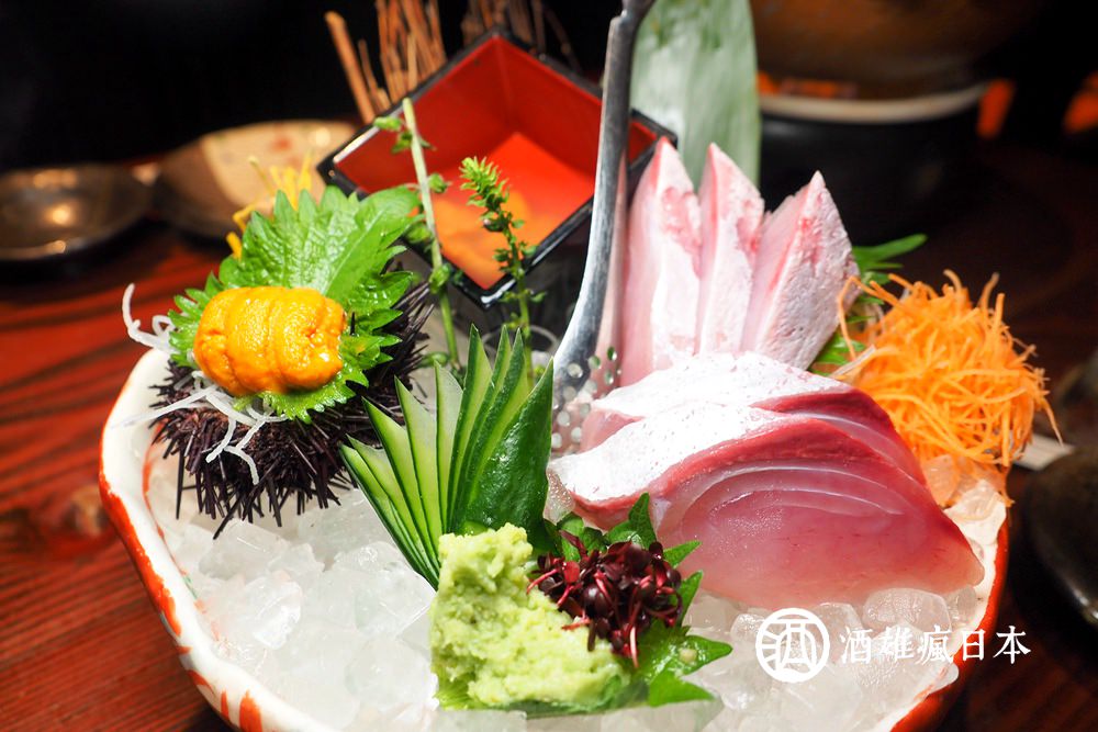 然後我們點了豪華生魚片!有海膽、厚切平政、以及寒鰤,每一種都讓我回味無窮,那海膽甜到讓我吃得出神,沒想到這裡等級這麼高啊!