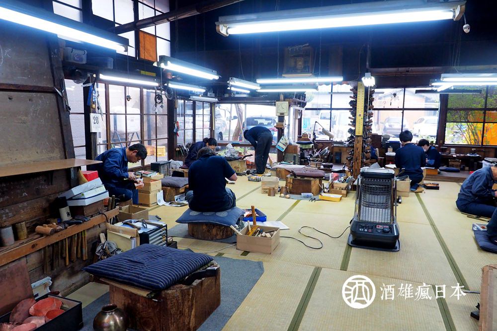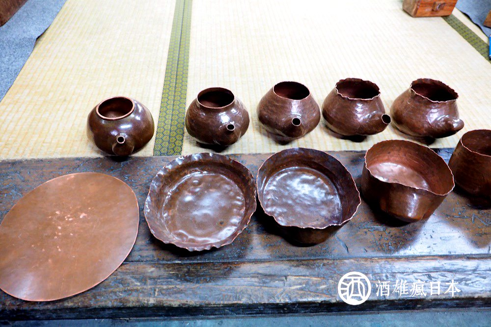 我跟門口的小姐說想要參觀之後,就很自然的帶我入室,並由一位從業45經驗的老牌職人來跟我解說。他說這裡的銅器一開始都是從一片銅板開始敲起,用特製的鐵鎚,將銅板抵著鐵棍來成形,一直敲一直敲就對了。製作一個銅壺,約需要一個月的時間,從頭到尾都由同一位技師完成,真的是很費工的事情。