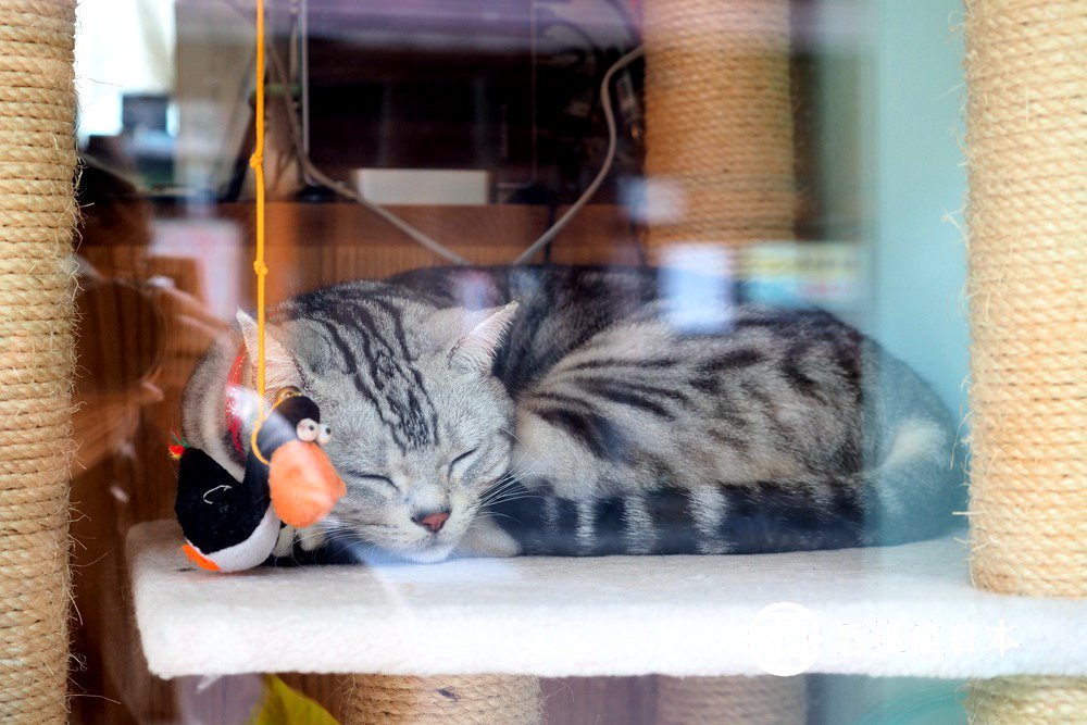 商店街據說有很多野貓,還有一隻吉祥物,就睡在商店街辦公室的櫥窗裡,算是這裡的老大吧!
