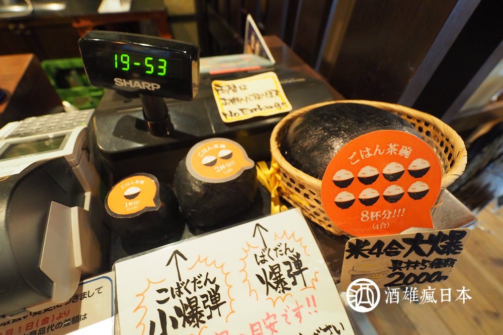 我的目標是這個爆彈飯糰!都是採用新瀉縣產越光米製成,口味自然不在話下,因為等等還要去居酒屋大吃,所以就點了一個最小顆的,如果朋友很餓的話,可以挑戰有四杯米(8碗飯)製成的大爆彈!