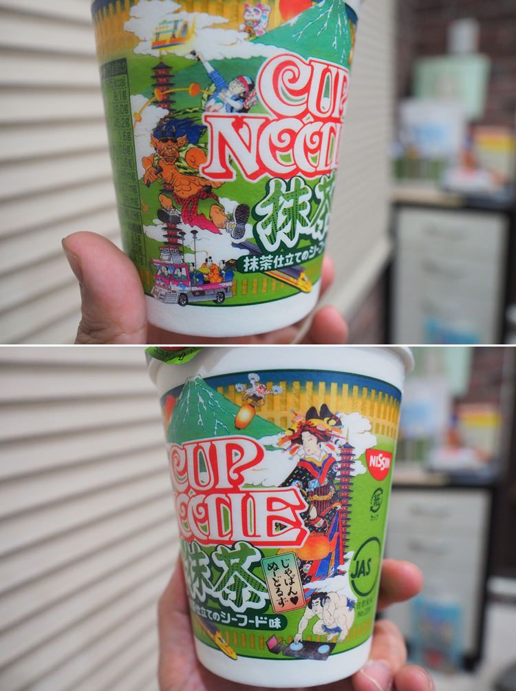 日清泡麵真的很會搞怪炒話題,除了去年就開始推的RICH系列泡麵(魚翅風味、鱉湯風味、牛尾湯風味)之外,最近有到日本玩的朋友,應該對這個包裝不陌生吧!你沒看過,這碗綠綠的就是「抹茶風味海鮮杯麵」!