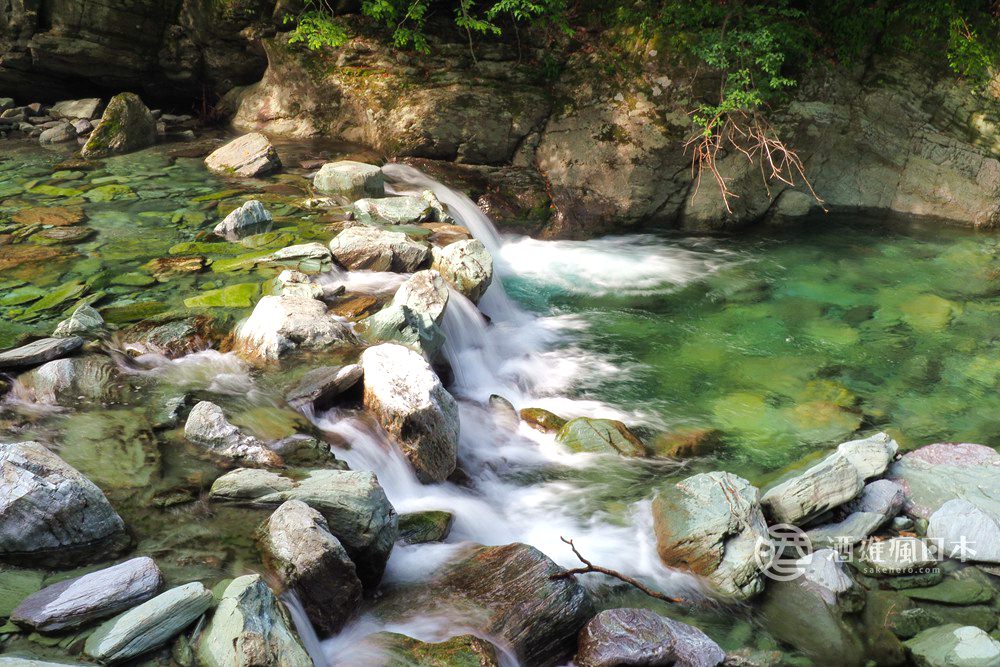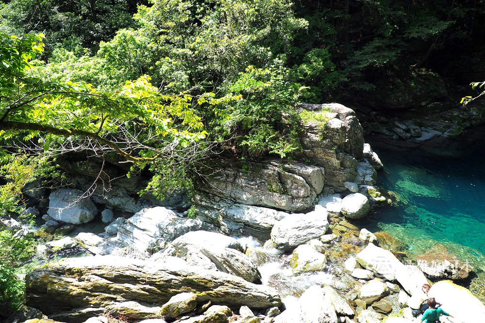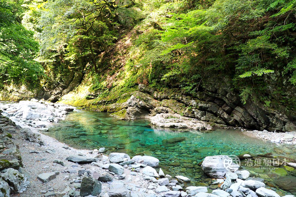 邊聽著潺潺水聲邊往上游走去,沒多久就能走到欣賞仁淀藍的地方。最深處的就是水晶淵,這邊地形還算開闊,也沒有限制飲食跟入水,很適合來這邊野餐、玩水哦!