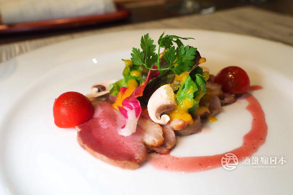 ▲今天的搭前菜酒,是香氣豐富酸味俐落的豐能梅 (高木酒造 山形)