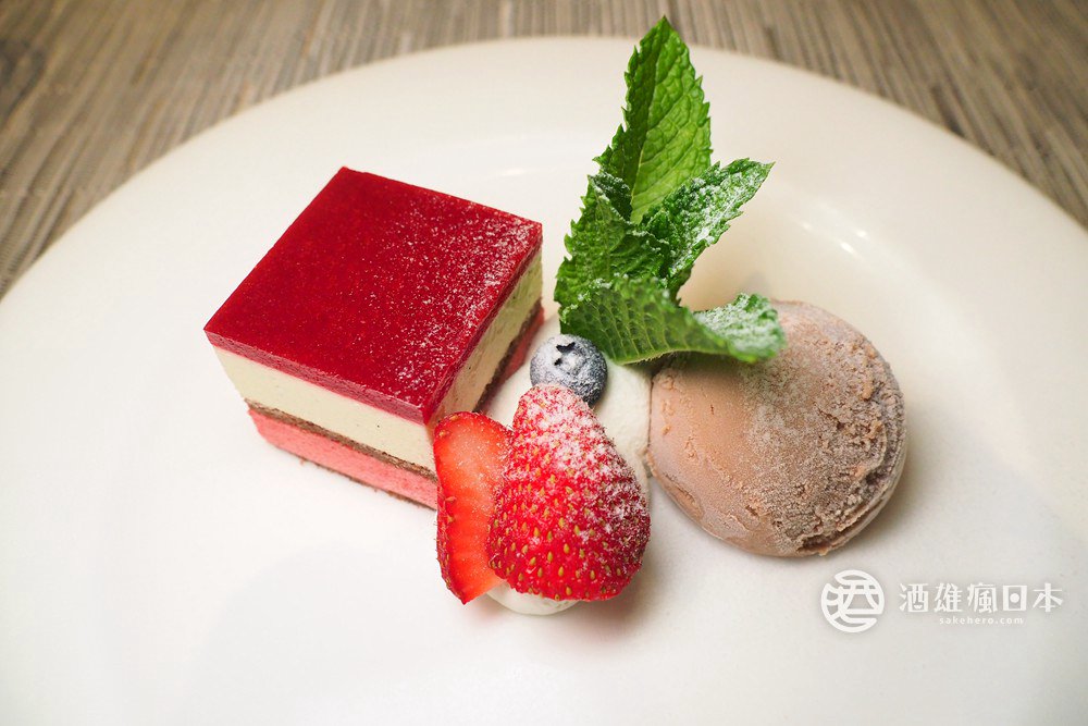 ▲甜點 梅果香草慕斯與巧克力冰淇淋