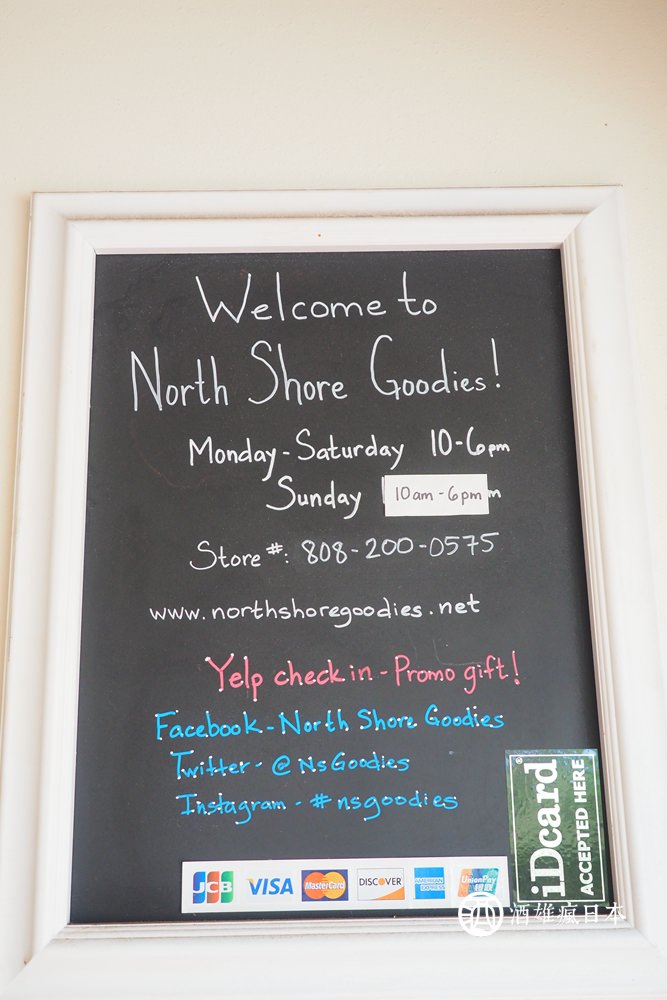 「NORTH SHORE GOODIES」營業時間是每天的10-6pm,大部分的信用卡都可以使用。