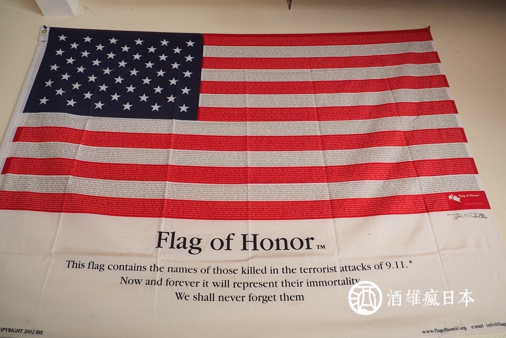 牆上裝飾著美國國旗