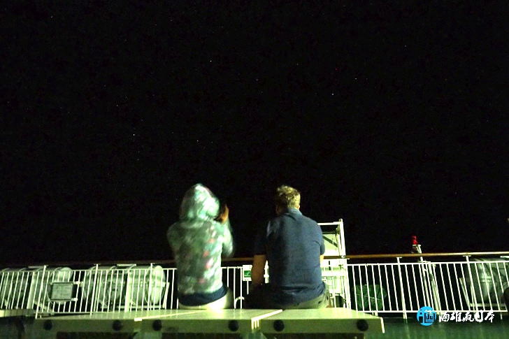 ▲晚上沒事情做,就在頂樓甲板躺著看星星,其實真的可以看到很美的星空,但因為船上會晃,就沒辦法長曝光,不能表現他的美給大家,真是可惜啊!