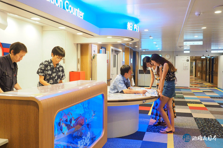 A:我想每一個規劃前往小笠原的人,一定會面臨這個問題。其實因為小笠原丸並不是豪華郵輪,他某種程度上算是交通船,也就是跟我們去綠島、澎湖那種船會比較類似,只是比較大艘了一點而已。也因此船上並沒有所謂的娛樂設施,但生活機能是很充足的,有大餐廳、賣店「海豚」、展望交誼廳「母島」、小交誼廳「父島」、觀光資訊區、24小時開放的淋浴間等地方,能說上的娛樂的設備,應該就屬船上販賣機區的唯一一台扭蛋機,跟船上紀念章了吧。