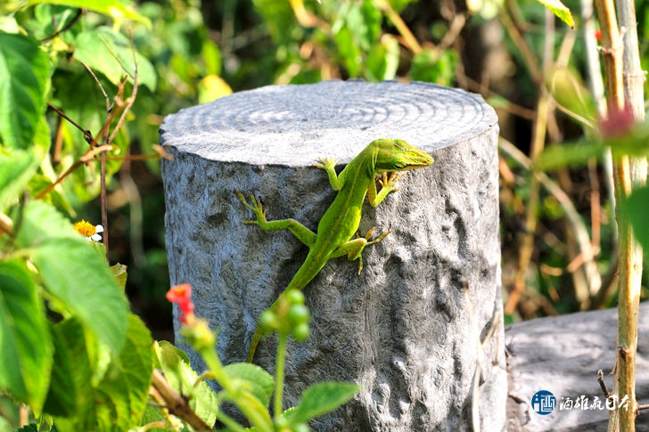 ▲這種蜥蜴據說是以前美軍管理時期,作為寵物帶進來的,也就是所謂的外來種,目前已經野生化,在父島共有數百萬隻,因為他們會吃掉固有種的小笠原蟬,所以讓這裡的生態保育家非常的頭痛,且因為他們生命力很強,速度又非常快,要捕捉他們也不是容易的事情。現在他們只能防堵這種蜥蜴,不要入侵到母島等其他島嶼了。據說在離父島最近的兄島上,還有做三層圍欄,物理方式要隔絕蜥蜴的入侵(腦中想到惡靈古堡的畫面…)