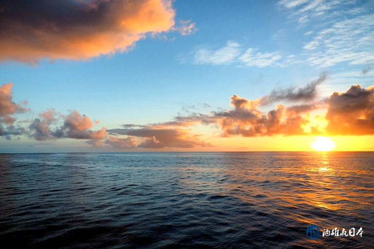 ▲因遠方有台風形成,我們在船上欣賞了美麗的火燒雲,很多日本人沒看過台風前的夕陽,紛紛來到甲板拍照。