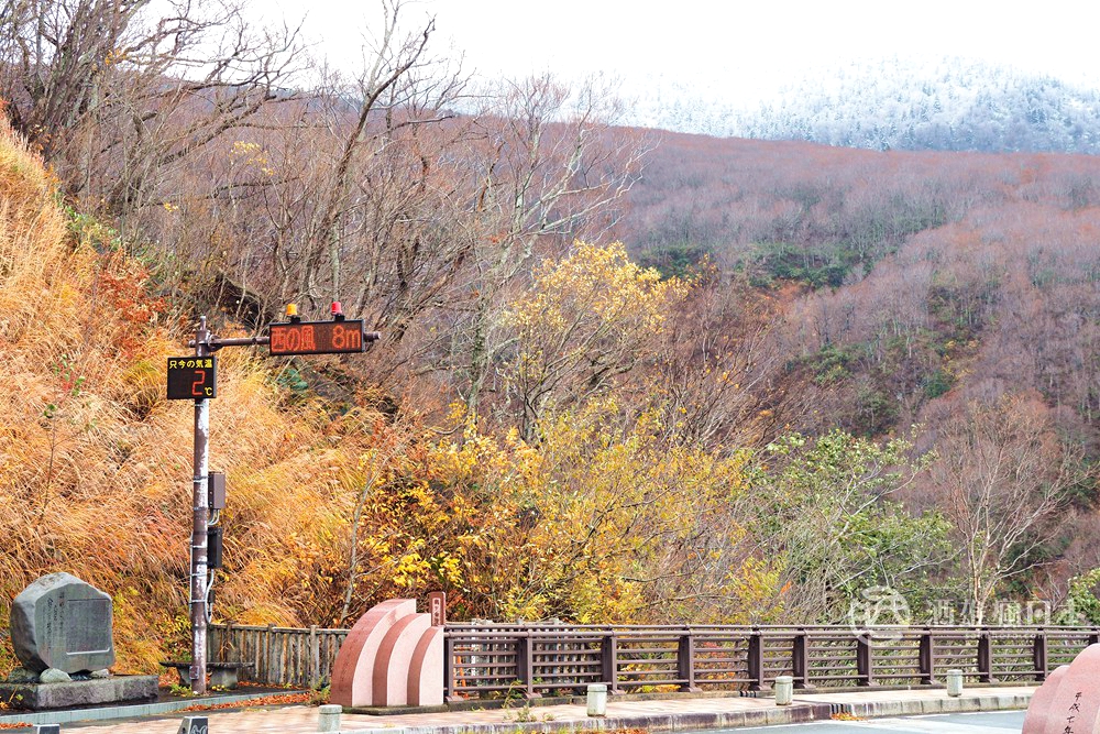 下車發現,南方十和田方向較高海拔山區已經積雪,一口氣可以欣賞兩種季節,也算是值得繞路了吧。