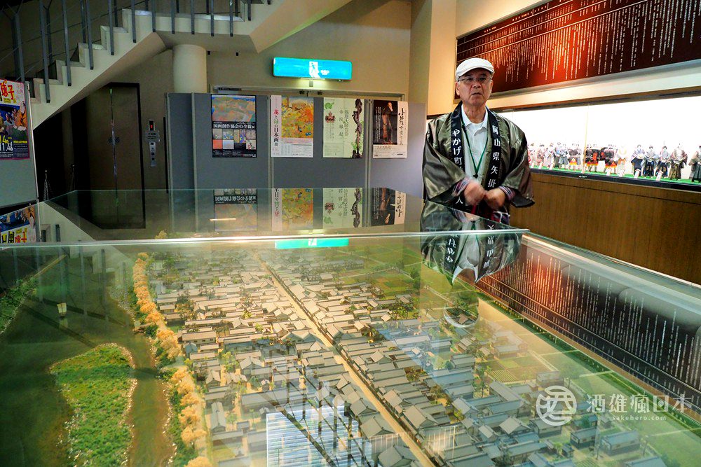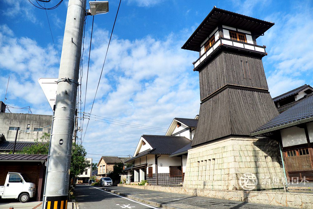 我們先參觀了矢掛鄉土美術館,遠遠就可以看到這裡有個哨塔,本以為這是為了怕敵人攻進來的哨站,結果聽了故事才知道,這裡不是用來看敵人,而是用來看水的。原來以前的矢掛町只要一遇到大雨,就幾乎一定會淹水,但淹水不是像潰堤那樣一口氣襲來,而是水位從底下慢慢升上來,因此以前就會到處設置這樣的高塔,監視一下現在水漲到哪邊,哪個地區的人要撤離,哪些地區的人要開始搬東西等等。