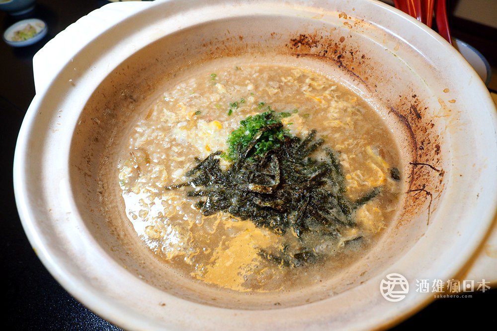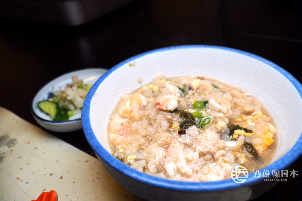 大概10多分鐘過去,大鍋子又重返餐桌,一大鍋香氣逼人的蟹肉雜炊就「咚」地放在眼前,雖然吃這麼飽之後再來澱粉食物真的很罪惡,但想到店員小姐剛剛辛苦的挑蟹肉,不好好品嘗這美味,不就辜負了他們的心意嗎?只好奮力與這鍋美味的雜炊決鬥了。愛蟹的朋友,這整篇你記得境港就可以了。