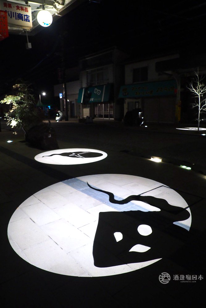 喝完酒可以到街道上走走,這裡為了創造街道的特色,聯合了鎮民一起做一件特別的事情,那就是家家戶戶都要設計一個專屬的「暖簾」,也就是我們進去居酒屋之前,都會掛在門口的短門簾。每一家的設計都不一樣,非常有趣。