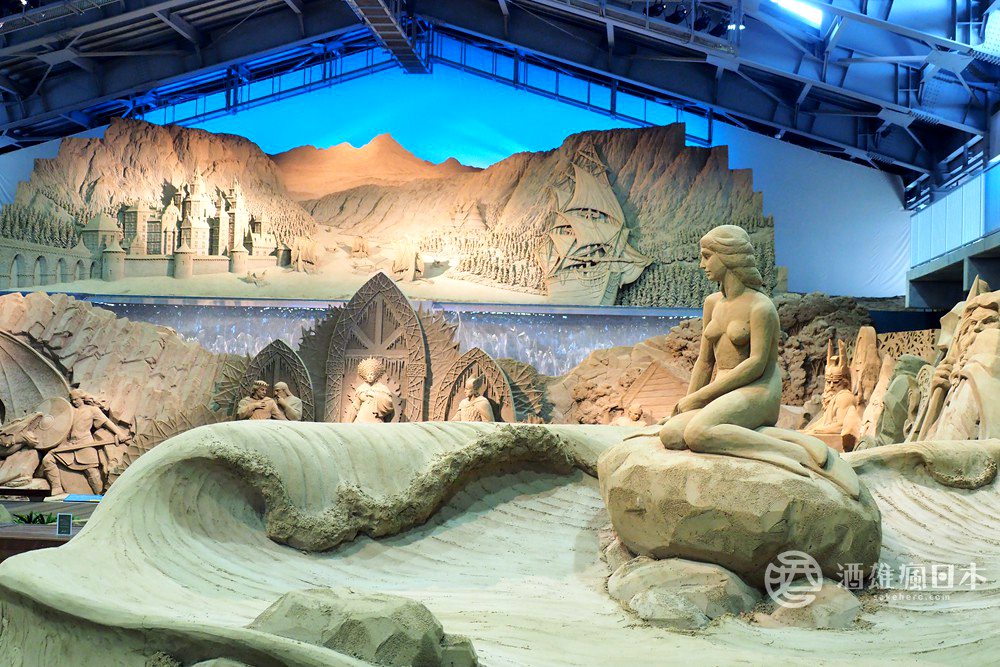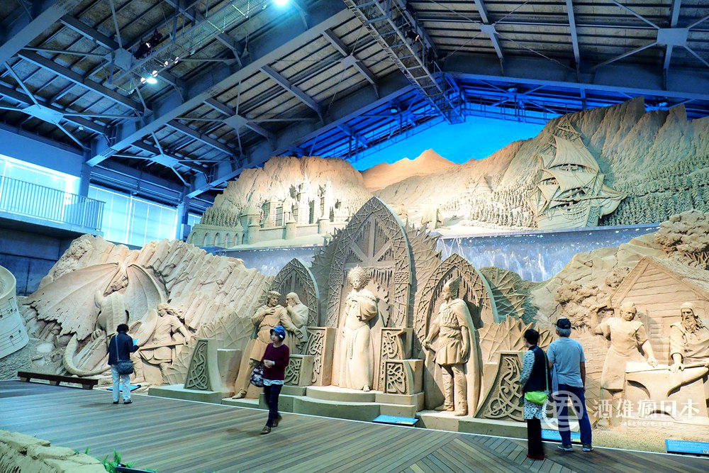 今年的主題是北歐,除了可以看到很多栩栩如生的雕像之外,使用大量的流水,就是今年的特色。因為沙雕是利用水跟沙子結合,來產生造型力的,據說流水會使得空氣中的溼度增加,而讓沙雕的保存提高難度。如果有時間的話,不妨進來欣賞一下。我本身對於沙雕雖然不是特別有興趣,但每次來還是覺得應該要看一下當年的主題,感受一下沙的各種面貌。門票只要600日幣,也算是很佛心的價格了。