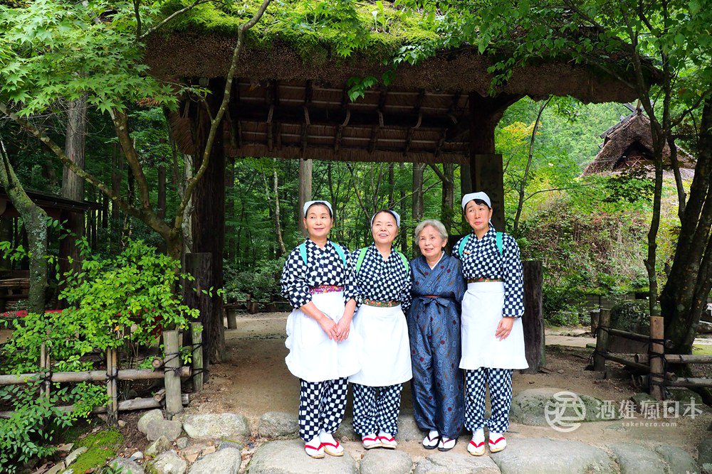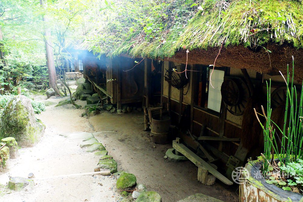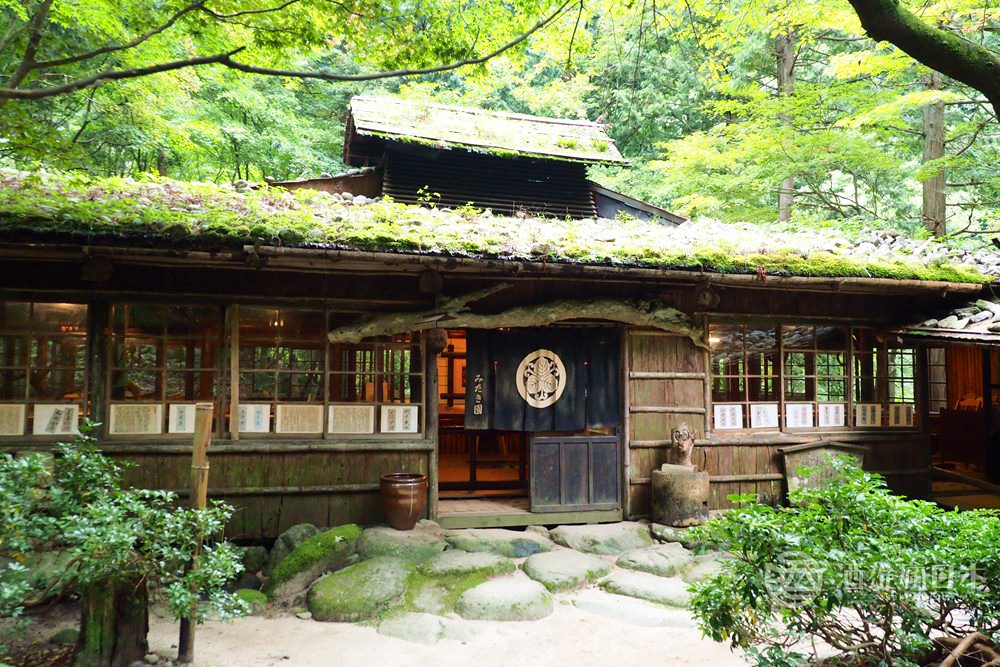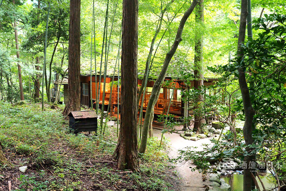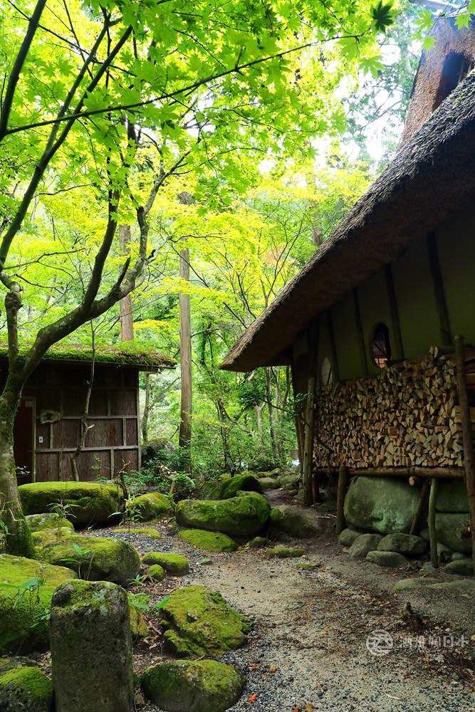 經過一小時左右的車程,我們就抵達了「みたき園(三滝園)」,是一間身處山林間的餐廳,也附設咖啡館, 一走進來,映入眼簾的是幾座被綠意覆蓋的茅草屋跟整片樹林,栗子就落在邊上,裊裊升起的炊煙,與細細流水聲,讓我不禁懷疑自己的眼睛,這簡直是烏托邦啊!我回想剛剛那一小時的車程,是不是穿越了什麼時空隧道,不然怎麼解釋眼前這片超美的天地,會忽然出現在這裡呢?