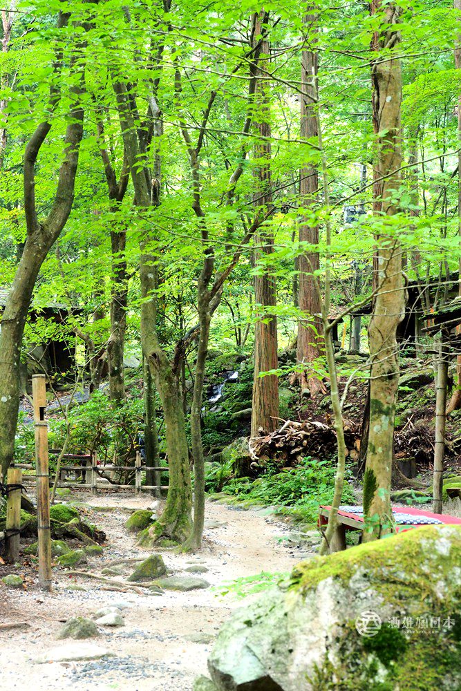 「みたき園(三滝園)」 所在的芦津渓谷,是鳥取縣的紅葉景點,可惜我們來的太早,仍然是綠葉一片,只有些偷跑的葉子,不小心紅了。此地位處豪雪地帶,冬季時山路會因積雪封閉,因此每年都是營業到12月第一週,然後一直休息到隔年四月。春天來臨時,又得來這邊大修一番,真的是非常辛苦,但也能感受到園主心中的堅持。