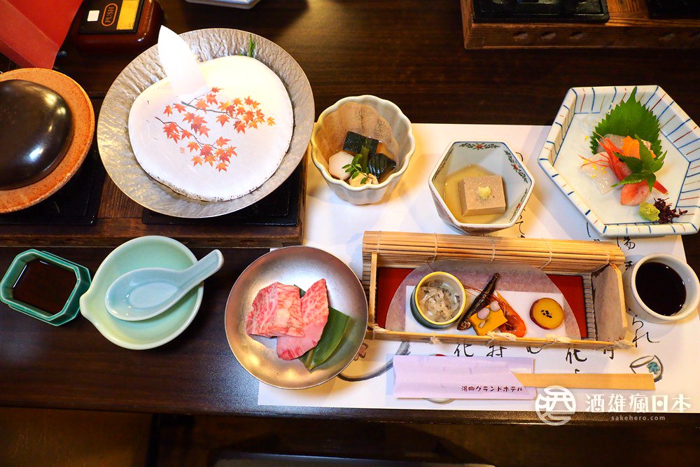 我們入住的是比較中規中矩的「湯郷グランドホテル」,是蠻傳統的溫泉旅館。因為溫泉有對應肌肉的問題,所以為了不要讓早上摔倒的傷惡化,我可是很認真的泡了三次湯啊。這個季節差不多到了日本人旅遊、消化年假的時候,所以我們去吃飯的時候,看到不少日本家庭來住宿,開個車就能享受溫泉與美食,真的很羨慕日本人啊!