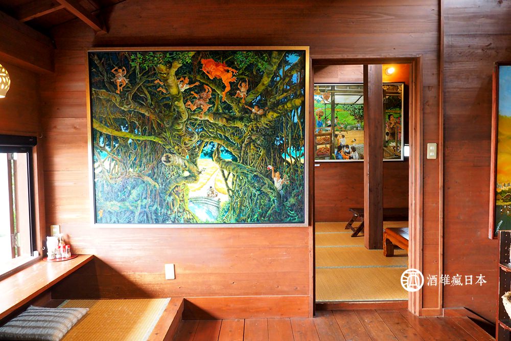 山的茶屋裡面有很多象徵沖繩的繪畫,讓人看的很舒服。真的是很棒的空間。窗邊的位子肯定是最快被坐滿的!