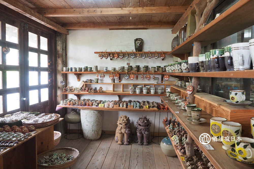 從山的茶屋往西邊開不到5分鐘,會看到路邊有個小小的陶藝工房,也就是「玉城燒」,「山的茶屋」裡的陶器,都是這邊的師傅提供的喔!所以如果有看到喜歡的杯子,就可以來這邊買回家!