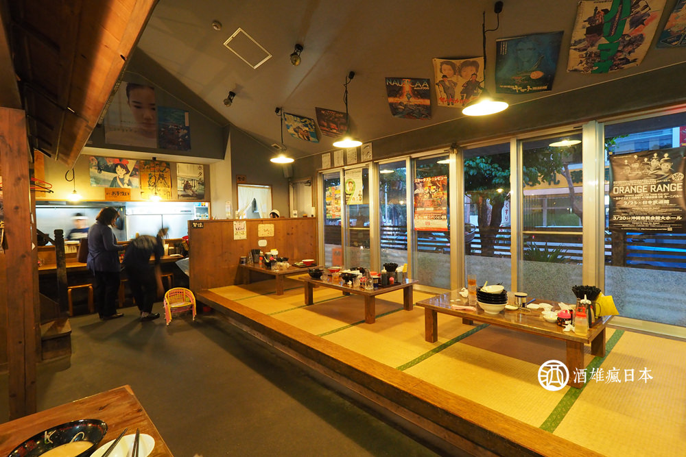 沖繩的拉麵店一定要有榻榻米座位,因為據說在地人喜歡這樣的座位,會比較有安心感!店內以昭和時期的電影海報為主要裝飾,蠻有趣的!