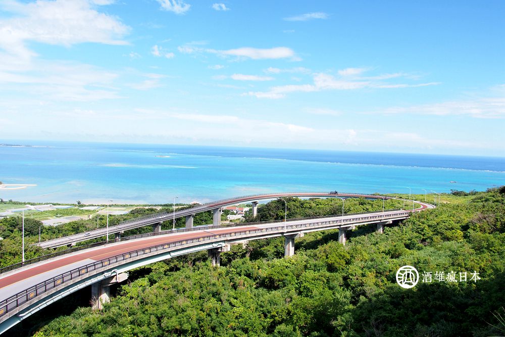從南部要往知念岬去,一定會經過這個陸橋,我們可以把車子停在自衛隊基地的前面,然後用走的來欣賞這個很美的陸橋!在上面看很美,開在陸橋上的感覺也很不錯!