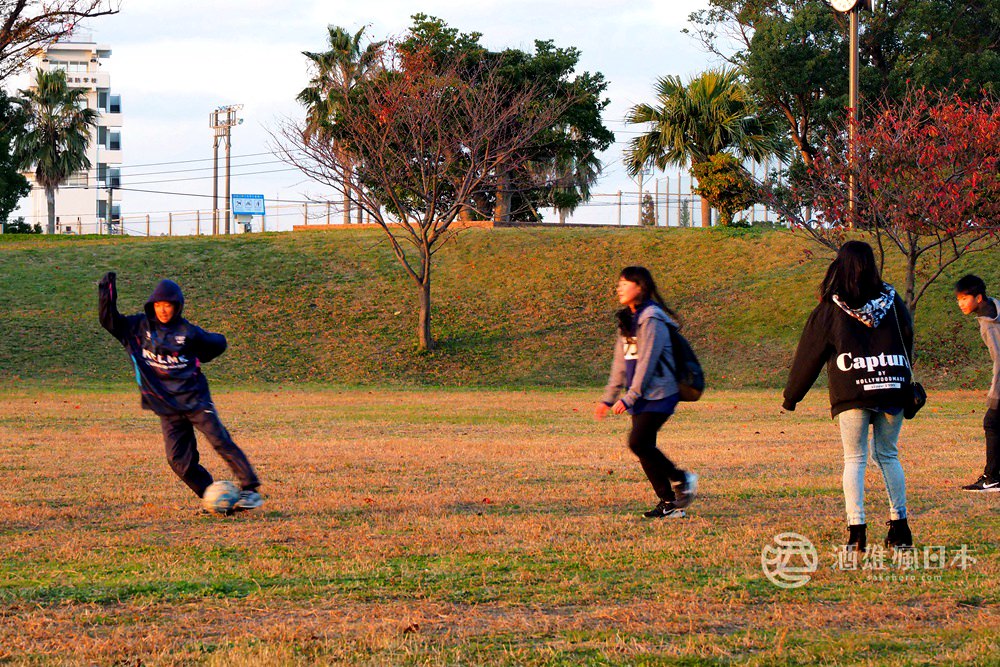 在地的小朋友在一旁踢球,真是和平的景色啊!
