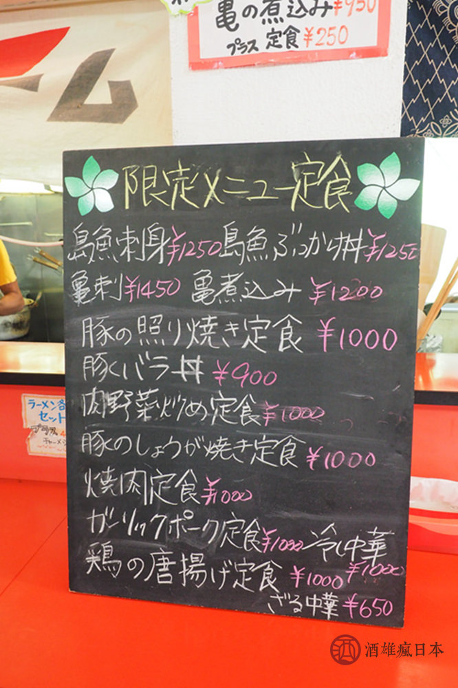 ▲船抵達日子的限定料理,除了海龜生魚片,燉海龜之外,都是一般食堂常見的料理
